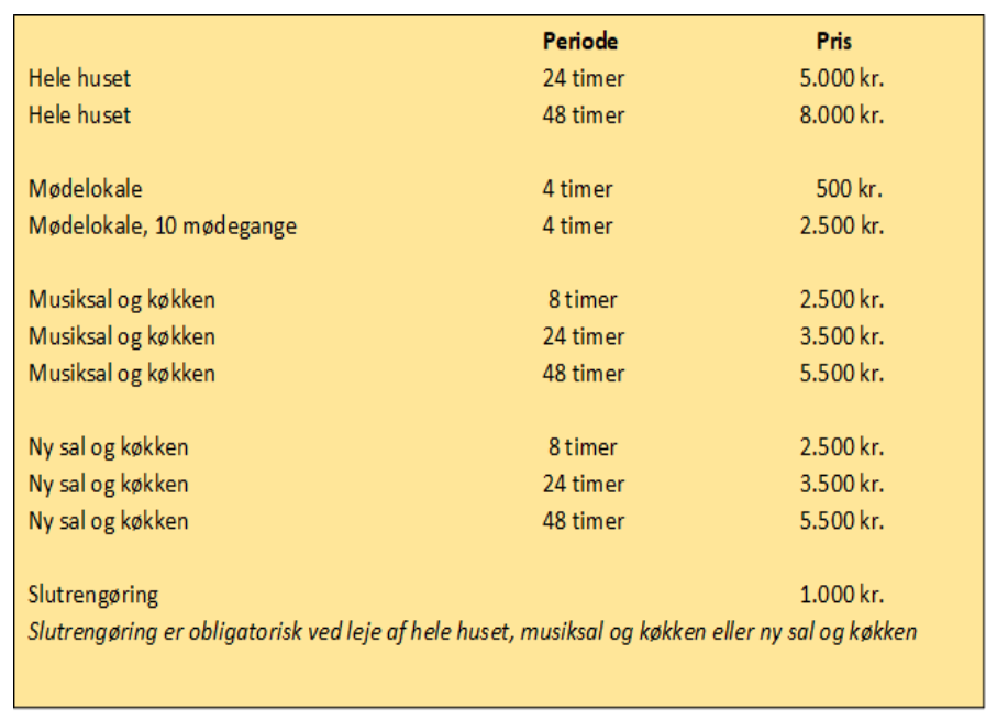 - Mulighed for opdækning til 100 personer i musiksal og 50 personer i den nye sal.